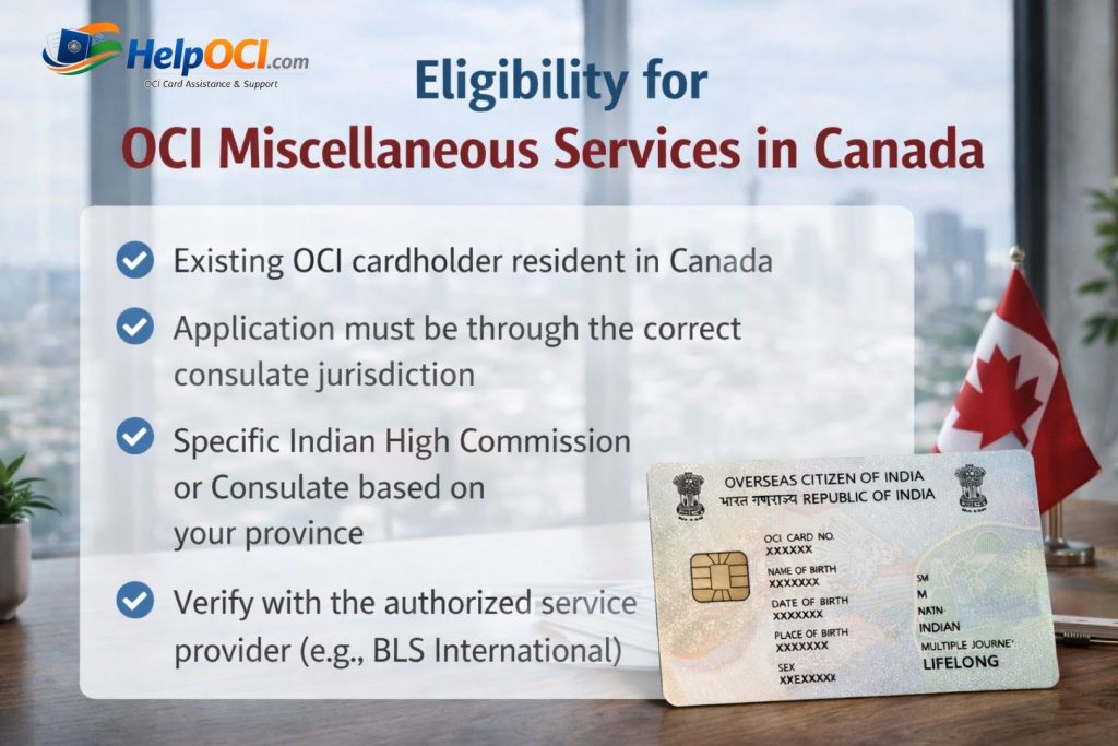 The process begins through the official OCI Miscellaneous Services portal and is then completed by submitting your application through the authorized service provider in Canada.