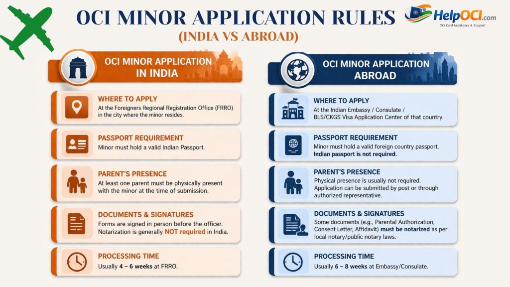 OCI Minor Application Rules (India vs Abroad)