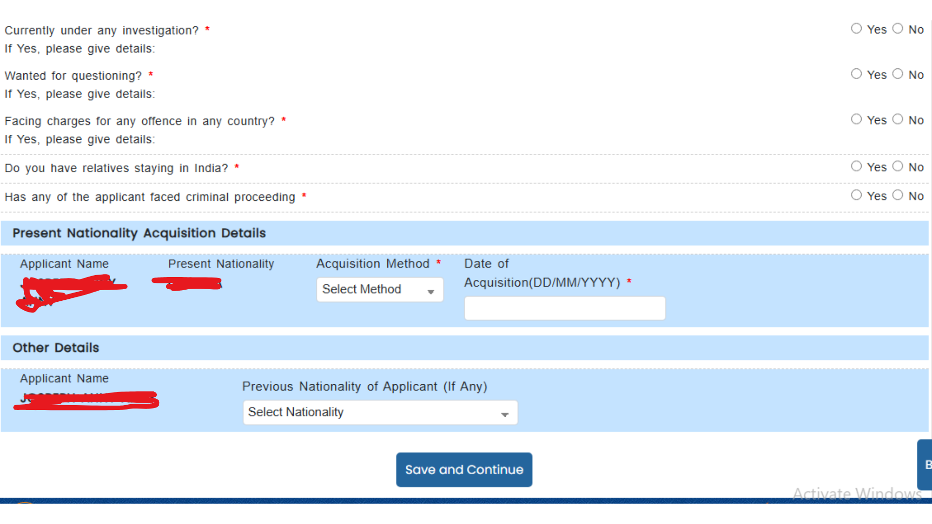 Step 10:- Fill Form B (It includes the following Questions)