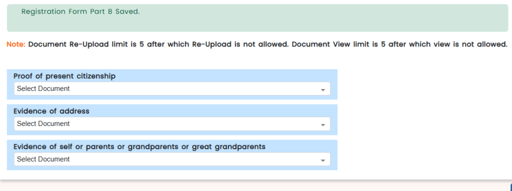 Note: Document Re-Upload limit is 5 after which Re-Upload is not allowed. Document View limit is 5 after which view is not allowed.