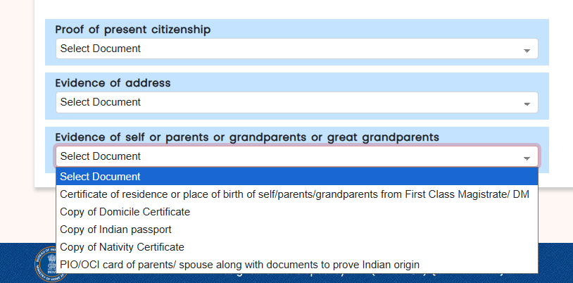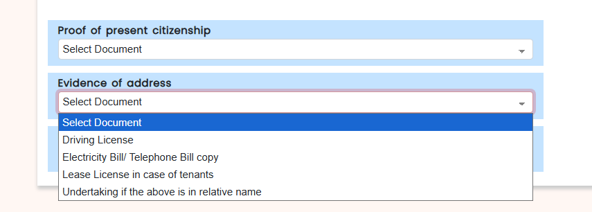 - In first Proof of present Citizenship there are three options in the dropdown. You need to choose the correct one based on your situation: