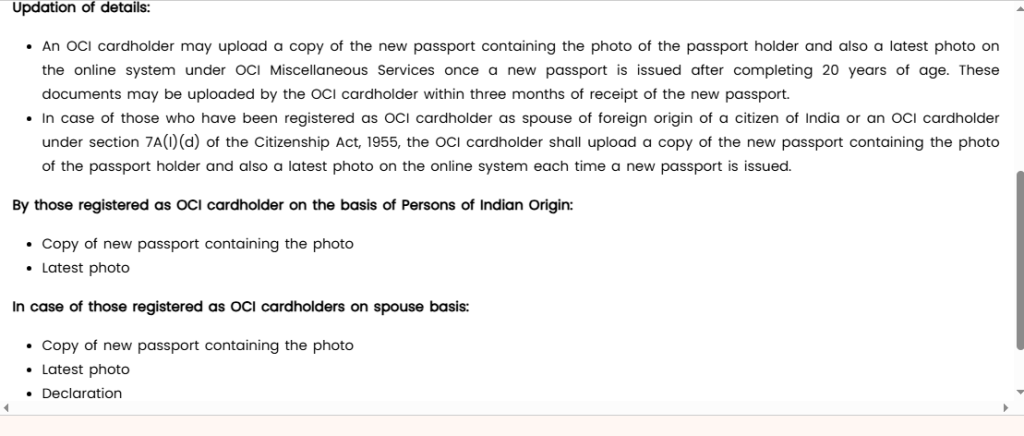 In this age criteria, you do not need to reissue your OCI card every time your passport changes. However, you must complete an online update. This includes: